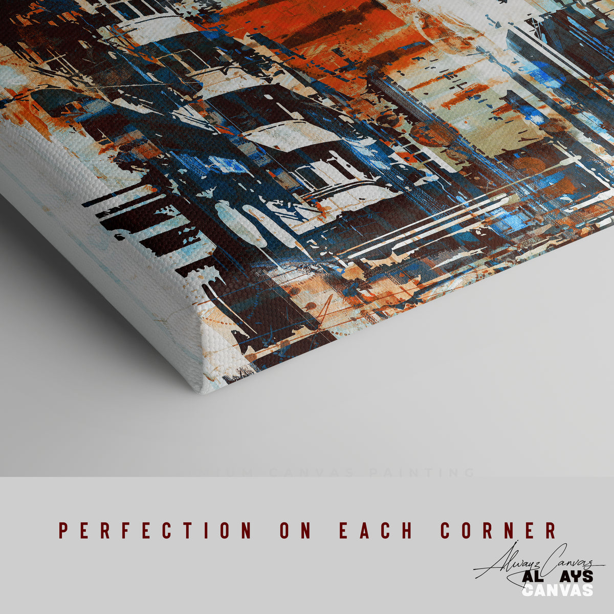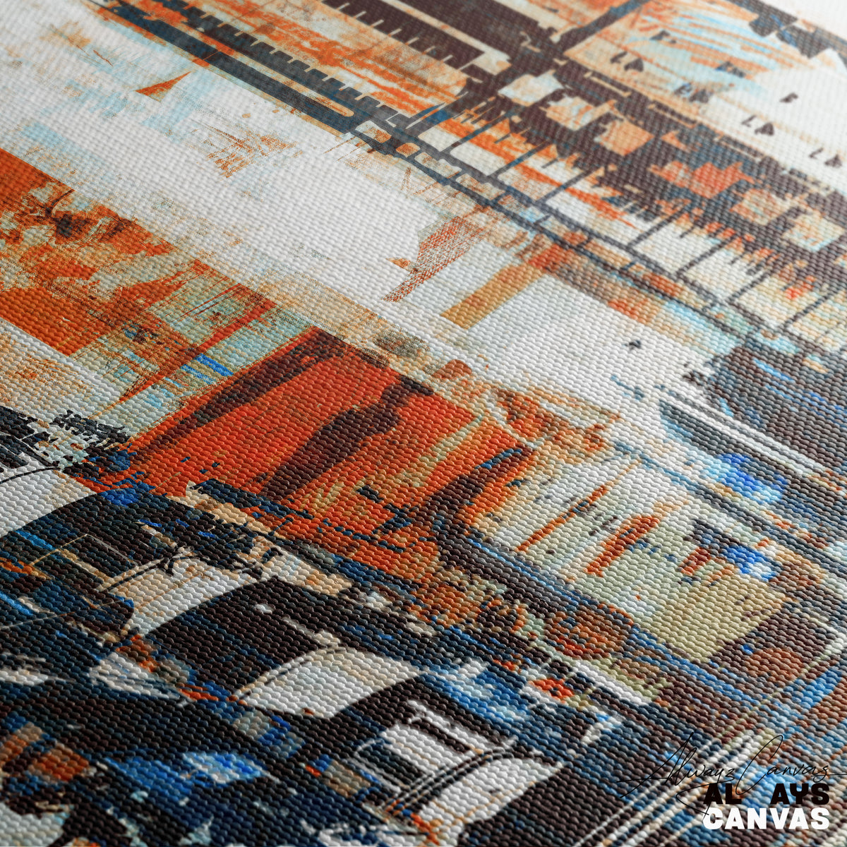 This modern canvas art features a captivating blend of bold colors, including warm oranges, deep blues, and soft whites, creating a stunning abstract cityscape. The textured brushstrokes and layered details evoke a sense of urban energy and dynamism. Perfect for an office artwork, living room, or as part of shop decor, this piece adds sophistication and contemporary flair to any space. Made with premium canvas and durable print for lasting beauty, it’s a fine art quality addition to your home or office. Order now and transform your space with this unique affordable canvas art.